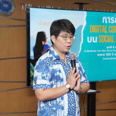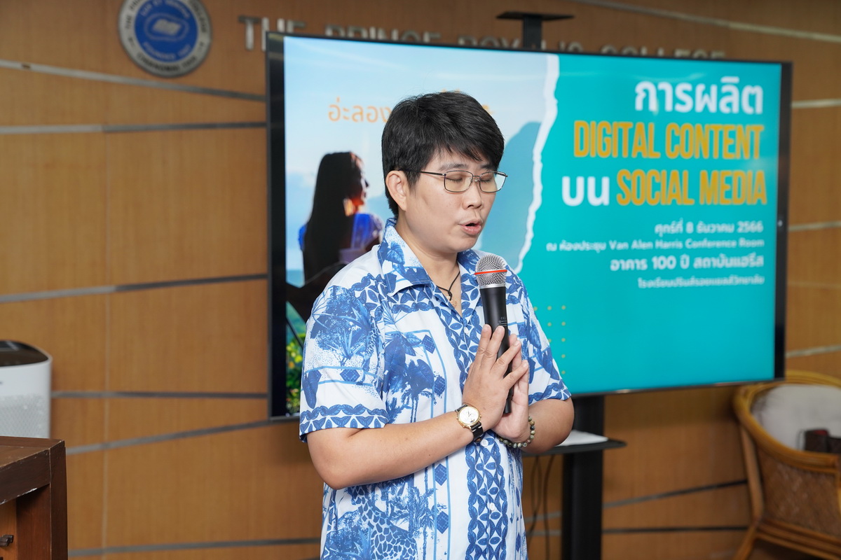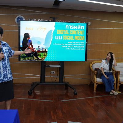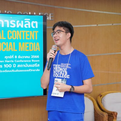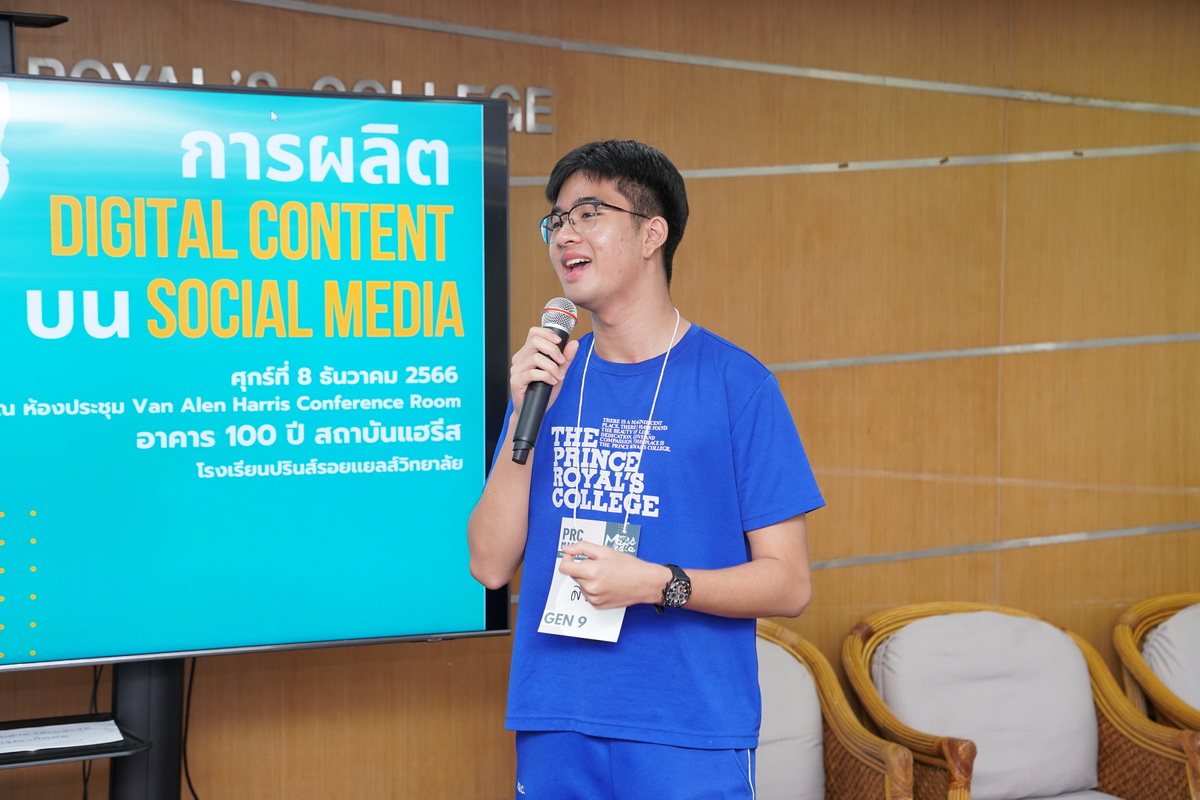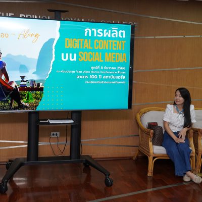 เมื่อวันที่ 8 ธันวาคม 2566 โรงเรียนปรินส์รอยแยลส์วิทยาลัย จัดการอบรม หัวข้อ “การผลิต Digital Content บน Social Media อย่างสร้างสรรค์” ใหักับนักเรียนชมรม PRC Mass Media และนักเรียนที่สนใจงานด้านการผลิดสื่อ และเพื่อเป็นการสร้างแรงบันดาลใจให้กับนักเรียน โดยได้รับเกียรติจากคุณสิร์ดาภัทร์ ประมวลรัตน์ บล็อกเกอร์ และเจ้าของเพจ อ่ะลอง-Along ให้เกียรติเป็นวิทยากร ณ ห้องประชุม Van Alen Harris Conference Room อาคาร 100 ปี สถาบันแฮรีส