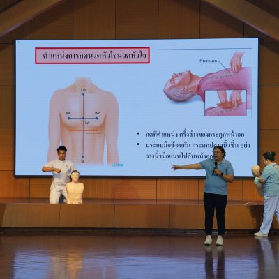 • การสอบปฏิบัติขั้นตอนการช่วยฟื้นคืนชีพ การปั้มหัวใจ (CPR)