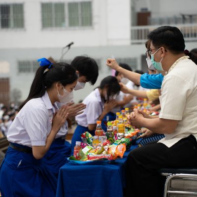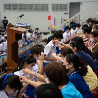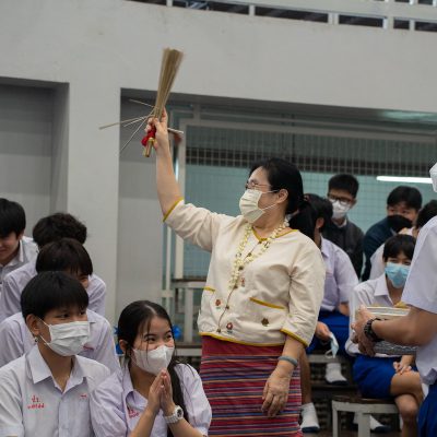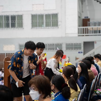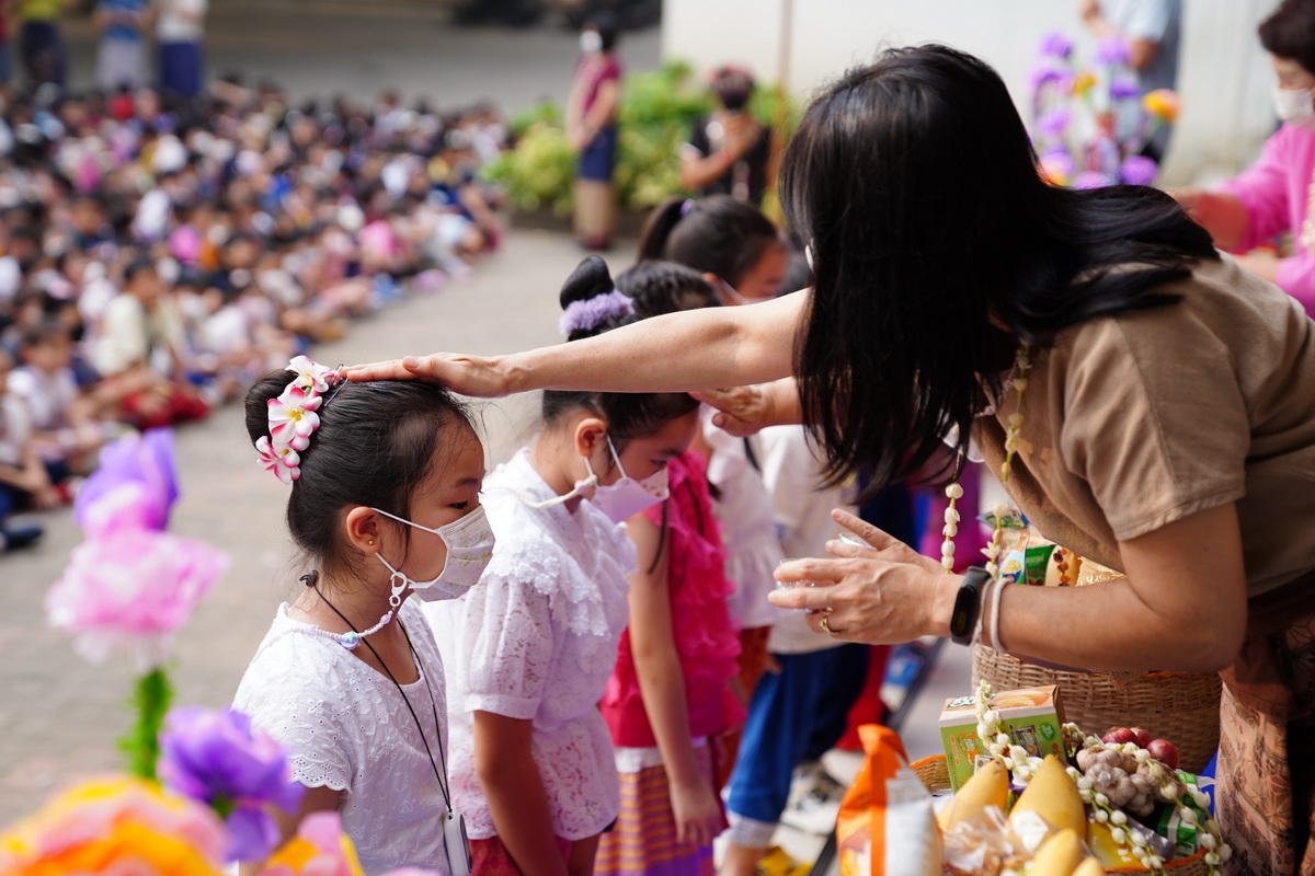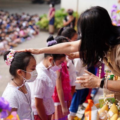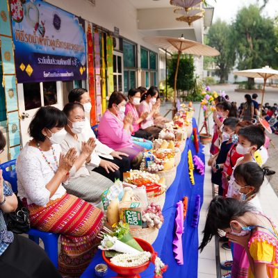 คณะครู นักเรียน ร่วมรดน้ำดำหัวขอสุมาลาโทษ และขอพรจากคณะผู้บริหารของโรงเรียน และคุณครูอาวุโส เนื่องในเทศกาลปี๋ใหม่เมือง