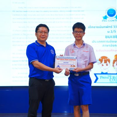 เมื่อวันที่ 14 กุมภาพันธ์ 2567 โรงเรียนปรินส์รอยแยลส์วิทยาลัย จัดพิธีมอบรางวัลโครงการประกวดสื่อสร้างสรรค์ ครั้งที่ 3 “PRC MORE THAN A SCHOOL” โรงเรียนปรินส์ฯ ที่เป็นมากกว่าโรงเรียน โดยได้รับเกียรติจาก ดร.เกรียง ฐิติจำเริญพร ผู้จัดการ-ผู้อำนวยการ และ อ.ปัญญา สกุลปั้นทรัพย์ รองผู้อำนวยการฝ่ายการจัดการและเทคโนโลยีสารสนเทศ ให้เกียรติเป็นผู้มอบรางวัล ณ โรงละครของโรงเรียน