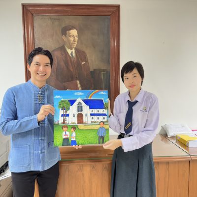 เมื่อวันที่ 20 ตุลาคม 2566 นางสาววศิกานต์ กิติลือ นักเรียนเก่ารุ่น Lisianthus’20 มอบภาพวาด “โบสถ์ในจิตนาการ” ให้กับ ดร.เกรียง ฐิติจำเริญพร ผู้จัดการ-ผู้อำนวยการ เพื่อเป็นที่ระลึกแก่โรงเรียน