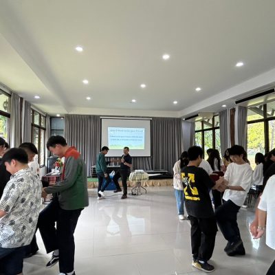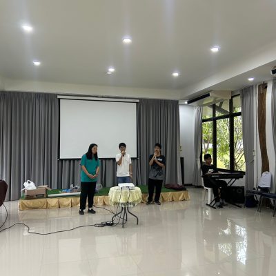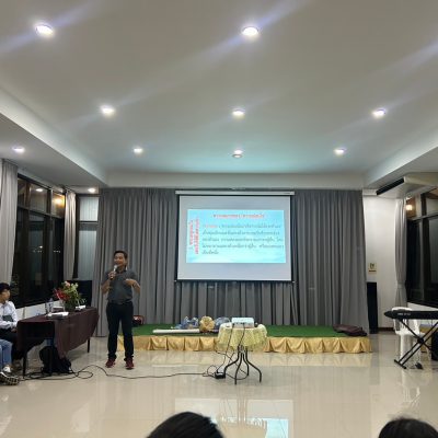 คัมภีร์ศึกษาโดยศาสนาจารย์วิทวัส ธรรมมา กิจกรรมความเป็นผู้นำ – ผู้รับใช้โดยศาสนาจารย์ชัชวาลย์ ด้วงโพธิ์ตะ และกิจกรรมกลุ่มสัมพันธ์โดยครูศาสนาอนันต์ ชัยธิ ณ บ้านสวนรถไฟ รีสอร์ท จ.เชียงใหม่