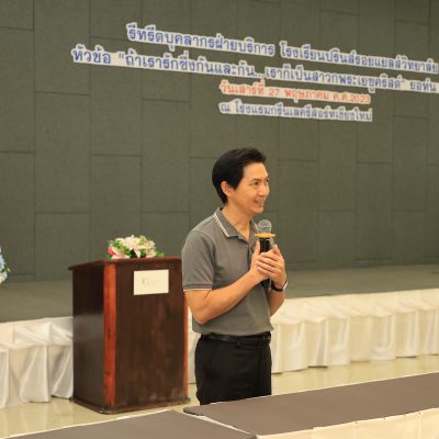 เมื่อวันที่ 27 พฤษภาคม 2566 โรงเรียนปรินส์รอยแยลส์วิทยาลัย จัดรีทรีตนักการ – รปภ.ของโรงเรียน ประจำปีการศึกษา 2566 ขึ้นใน หัวข้อ “ถ้าเรารักซึ่งกันและกัน…เราก็เป็นสาวกพระเยซูคริสต์” ยอห์น 13:35 ในช่วงคัมภีร์ศึกษาได้รับเกียรติจากศาสนาจารย์ ดร.สมชิด หัวนา ประธานฝ่ายอภิบาลคริสตจักรภาคที่ 1 วิทยากรคัมภีร์ศึกษา ณ กรีนเลครีสอร์ท เชียงใหม่