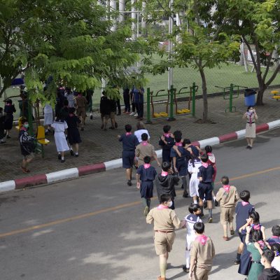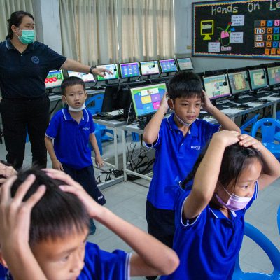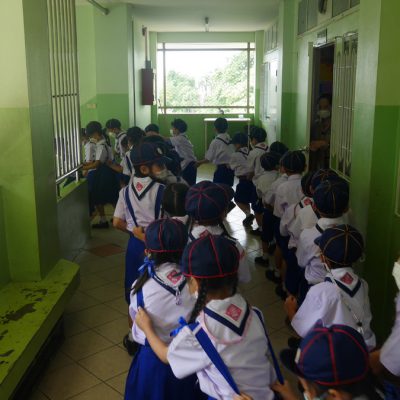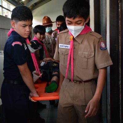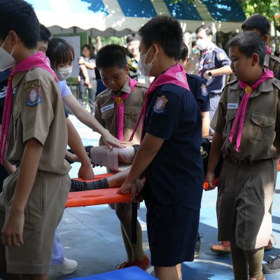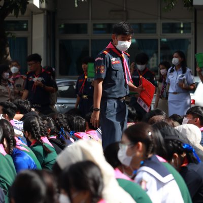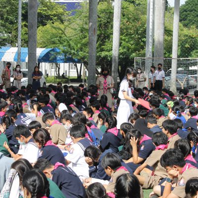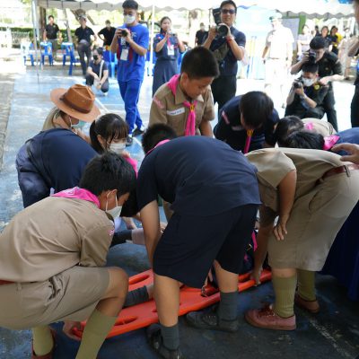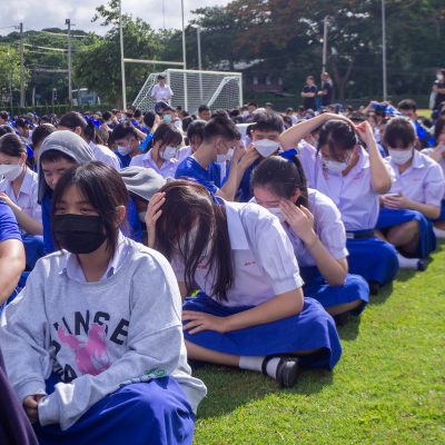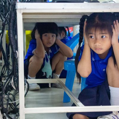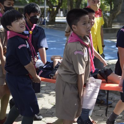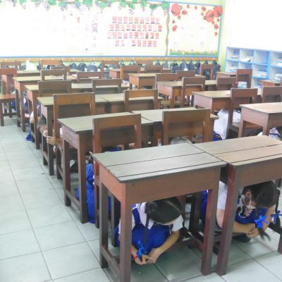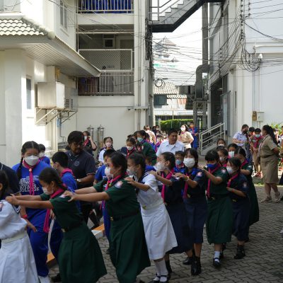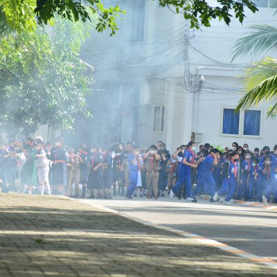 การฝึกซ้อมนักเรียน คณะครู บุคลากร ในการรับมือภัยพิบัติ อัคคีภัย และแผ่นดินไหว
