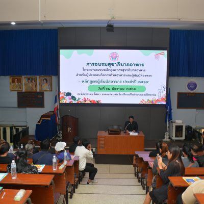 การอบรมมุ่งเน้นการให้บริการอาหารอย่างถูกสุขลักษณะ ป้องกันโรคจากอาหารและน้ำเป็นสื่อ และส่งเสริมสุขวิทยาส่วนบุคคลของผู้ประกอบการร้านค้า