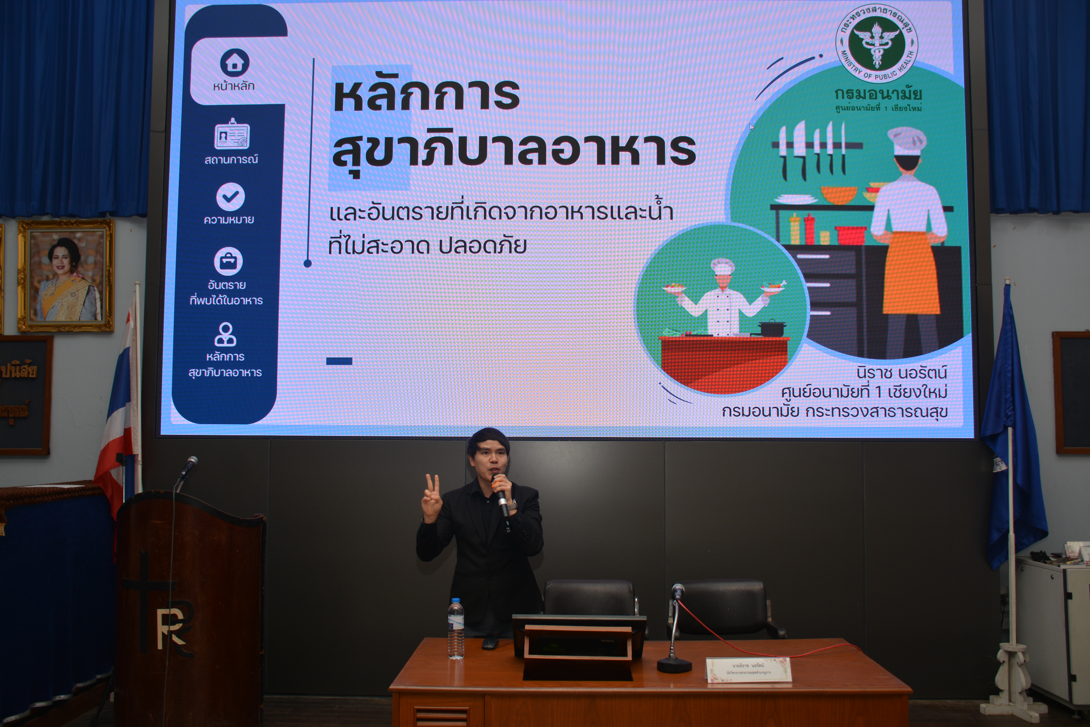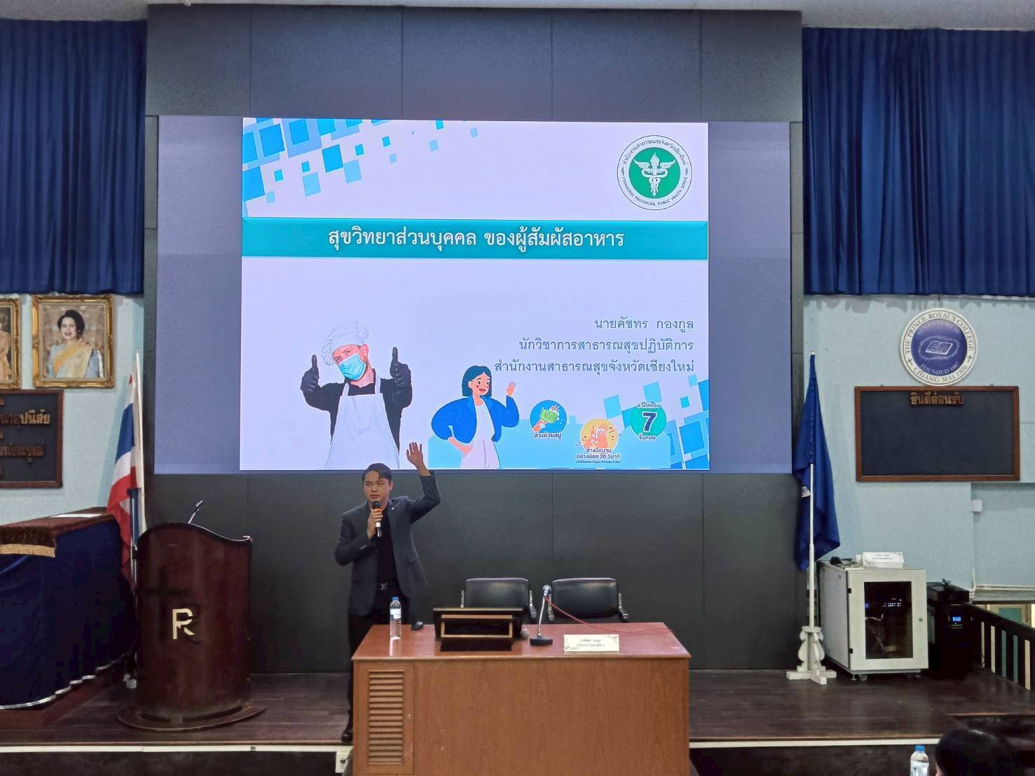โรงเรียนปรินส์รอยแยลส์วิทยาลัย จัดการอบรมหลักสูตรสุขาภิบาลอาหารสำหรับผู้สัมผัสอาหาร เพื่อยกระดับมาตรฐานความปลอดภัยด้านอาหารภายในโรงเรียน ได้รับเกียรติจาก นายปรมินทร์ จินณะแก้ว ที่ปรึกษานายกเทศมนตรี เทศบาลนครเชียงใหม่ กล่าวต้อนรับผู้เข้าร่วมอบรม