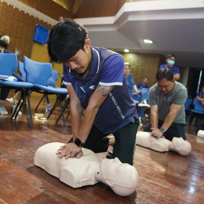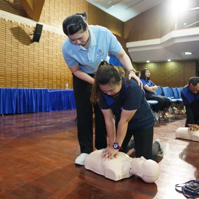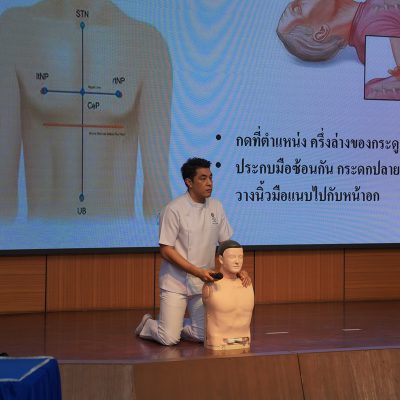 • การสอบปฏิบัติขั้นตอนการช่วยฟื้นคืนชีพ การปั้มหัวใจ (CPR)