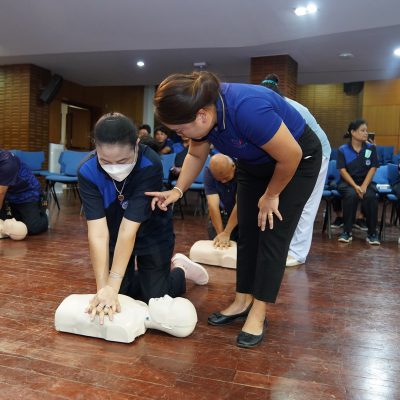 จัดการอบรมเชิงปฏิบัติการ การช่วยฟื้นคืนชีพขั้นพื้นฐาน (Basic CPR) รุ่นที่ 6 ปีการศึกษา 2567 ให้กับ ตัวแทนชุมชน นักการและเจ้าหน้าที่รักษาความปลอดภัยของโรงเรียน