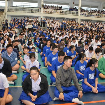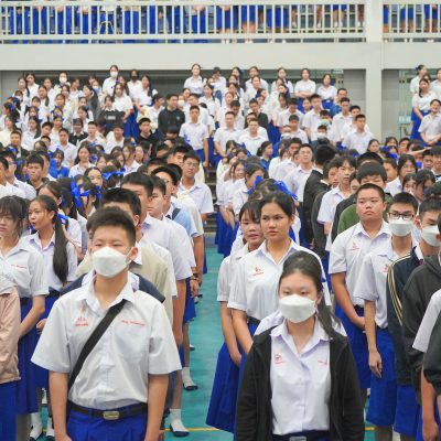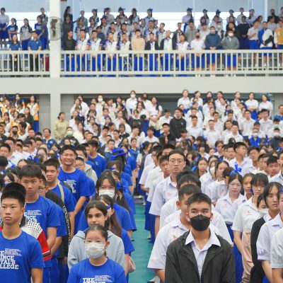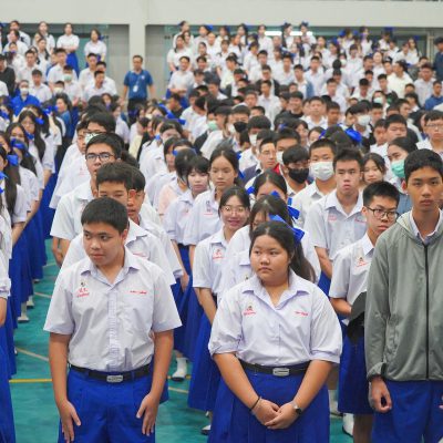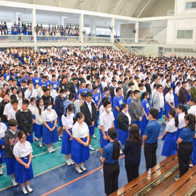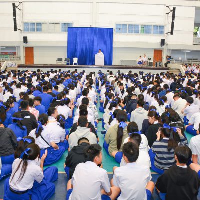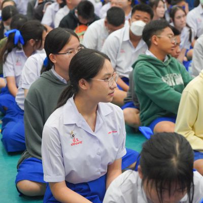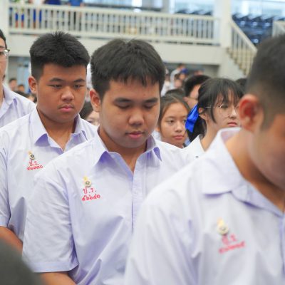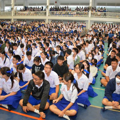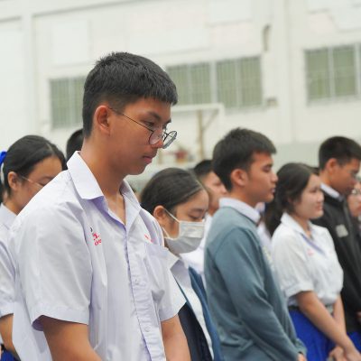 ภายหลังการอ่านสาร ผู้บริหาร คณะครู และนักเรียน ได้ร่วมกันยืนสงบนิ่งเป็นเวลา 1 นาที เพื่อเป็นการระลึกถึงและส่งแรงอธิษฐานเพื่อสันติภาพโลก โดยมีพิธีกรดำเนินรายการ คือ นายศิวกร เบี้ยปลูก ม.6/1 และ นางสาวพัทธ์ธีรา สีสด ม.6/3