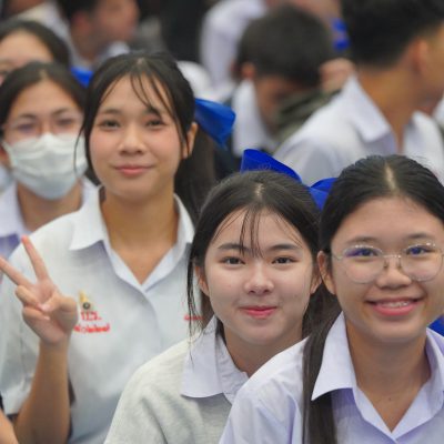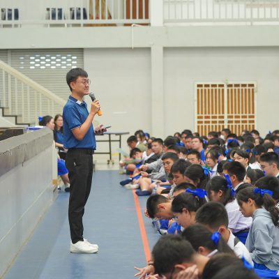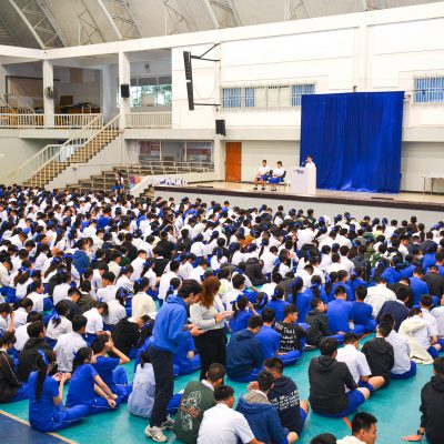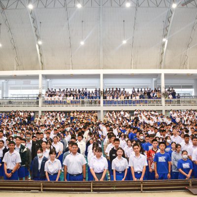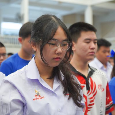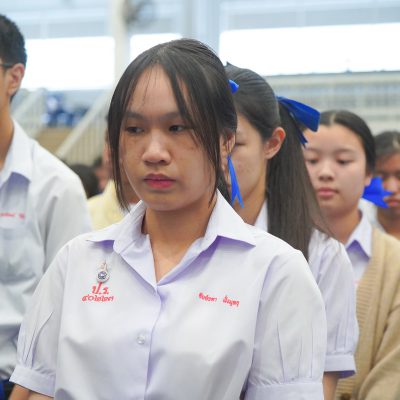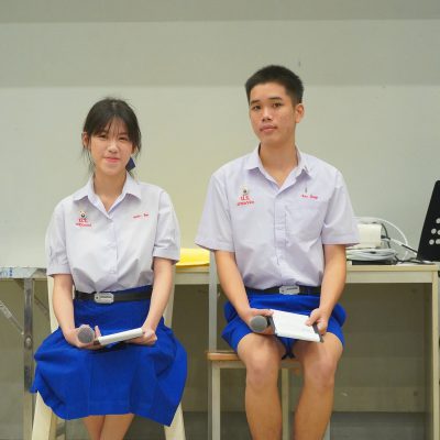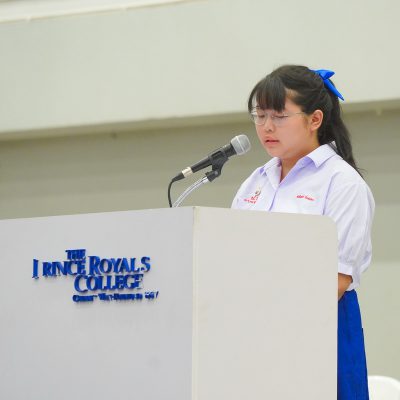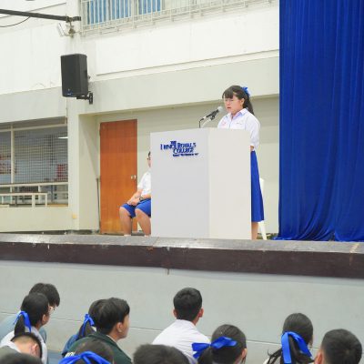– นางสาวกัญญาณัฐ พรหมมา นักเรียนชั้น ม.5/5 อ่านสารของประธานมูลนิธิสหพันธ์สันติภาพสากล ประเทศไทย