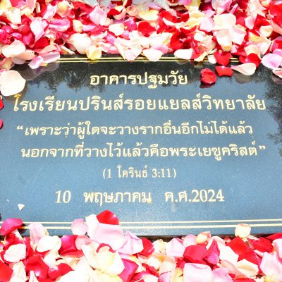 เมื่อวันที่ 10 พฤษภาคม 2567 โรงเรียนปรินส์รอยแยลส์วิทยาลัย จัดนมัสการพระเจ้าเนื่องในพิธีวางศิลารากอาคารปฐมวัย โดยได้รับเกียรติจาก ศาสนาจารย์ ดร.บุญรัตน์ บัวเย็น ประธานสภาคริสตจักรในประเทศไทย เป็นผู้ประกอบพิธีวางศิลาราก ศาสนาจารย์ ผศ.ดร.ประดิษฐ์ เถกิงรังสฤษดิ์ กรรมการบริหารโรงเรียน เป็นผู้อธิษฐานสรรเสริญ ขอบพระคุณและทูลขอการทรงนำ พร้อมด้วยผู้บริหารจากสภาคริสตจักรในประเทศไทย คณะกรรมการบริหารโรงเรียน อดีตผู้บริหารโรงเรียน สมาคมผู้ปกครองและครูฯ สมาคมนักเรียนเก่าฯ และแขกผู้มีเกียรติร่วมพิธี