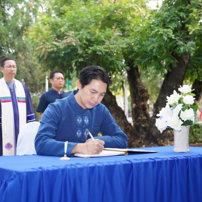 โดย ดร.เกรียง ฐิติจำเริญพร ผู้จัดการ-ผู้อำนวยการ นำคณะผู้บริหาร หัวหน้างาน ถวายพานพุ่มดอกไม้สด และลงนามถวายพระพร ณ พิพิธภัณฑ์บ้านแฮรีส