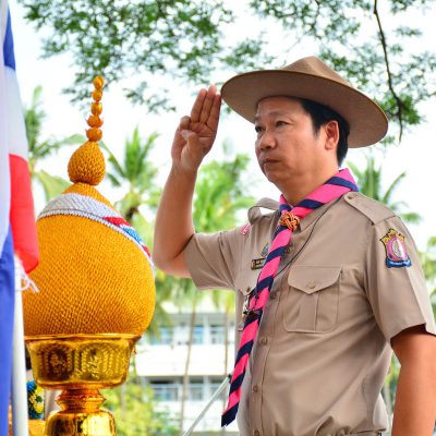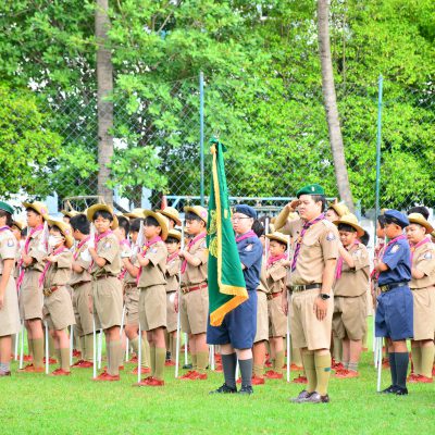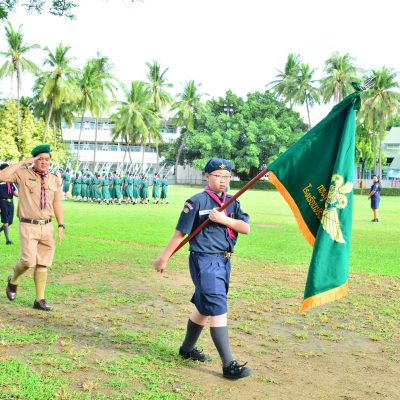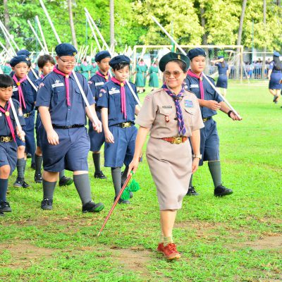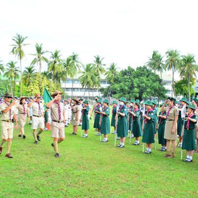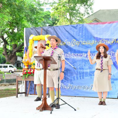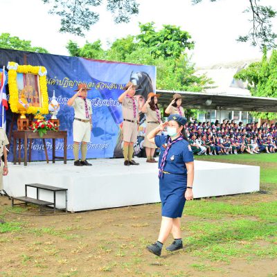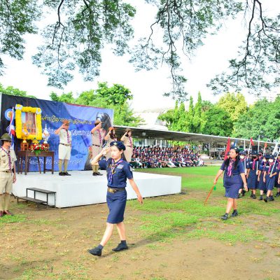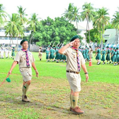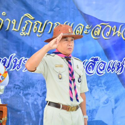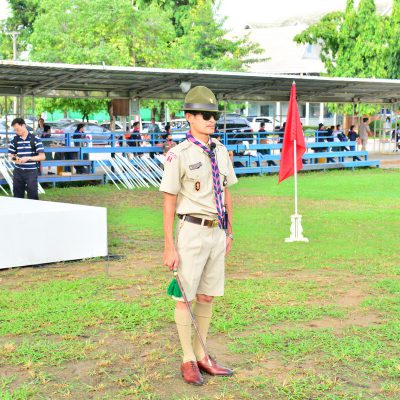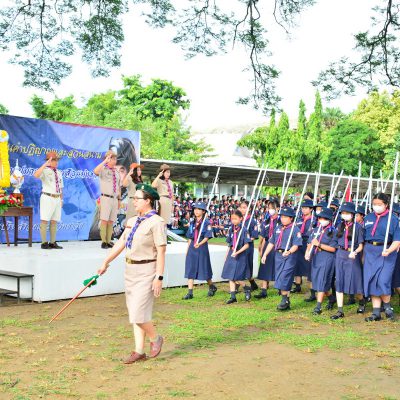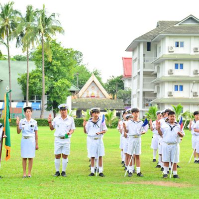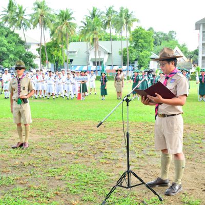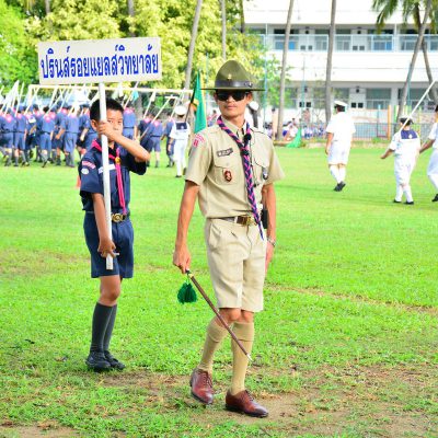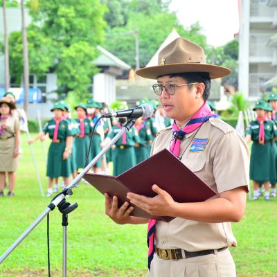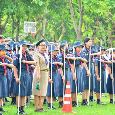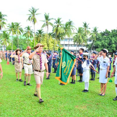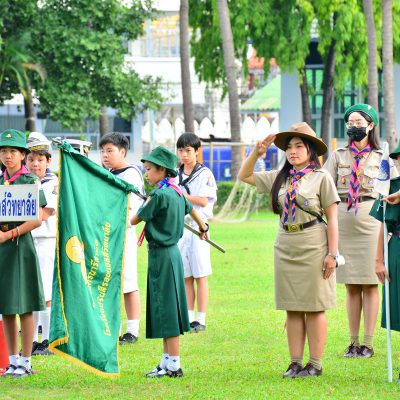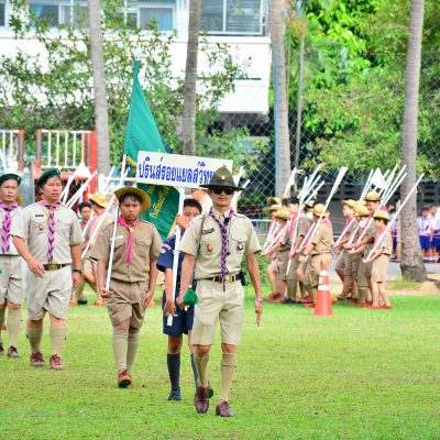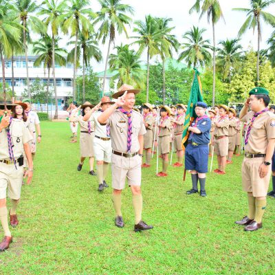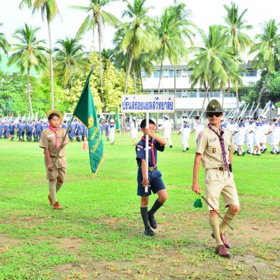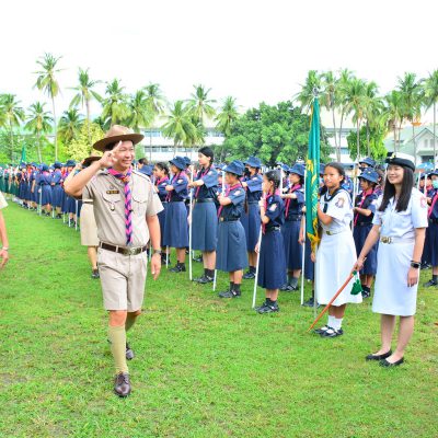 พิธีทบทวนคำปฏิญาณและสวนสนาม ให้กับลูกเสือระดับชั้นประถมศึกษาปีที่ 6