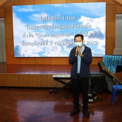เมื่อวันที่ 5 พฤษภาคม 2565 โรงเรียนปรินส์รอยแยลส์วิทยาลัย จัดรีทรีตนักการ-รปภ. ประจำปีการศึกษา 2565 ในหัวข้อ “Grow together” โคโลสี 2:7 โดยได้รับเกียรติจากหน่วยงานเผยเเพร่พระกิตติคุณ สภาคริสตจักรในประเทศไทย เป็นวิทยากร คัมภีร์ศึกษา เพื่อศึกษาน้ำพระทัยของพระเจ้าในการรับใช้และทบทวนการดำเนินชีวิตตามพระประสงค์ ณ ห้องประชุม Cornelia McGilvary Harris Auditorium อาคาร 100 ปี สถาบันแฮรีส