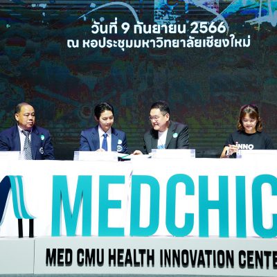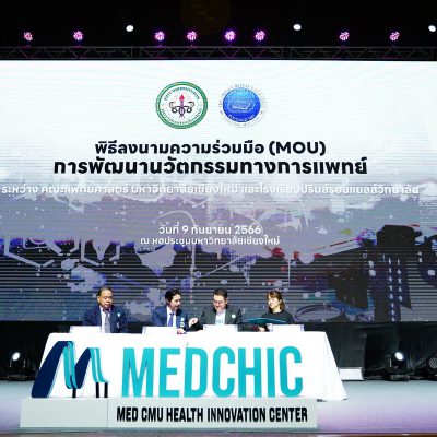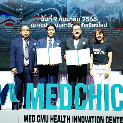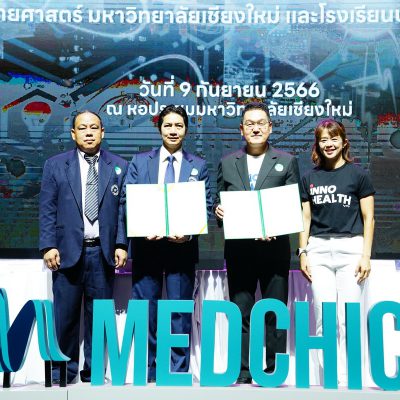 เมื่อวันที่ 9 กันยายน 2566 โรงเรียนปรินส์รอยแยลส์วิทยาลัย โดย ดร.เกรียง ฐิติจำเริญพร ผู้จัดการ-ผู้อำนวยการโรงเรียนปรินส์รอยแยลส์วิทยาลัย และ ดร.ดุษิต พรหมชนะ รองผู้อำนวยการฝ่ายวิชาการและประกันคุณภาพ และคณะแพทยศาสตร์ มหาวิทยาลัยเชียงใหม่ นำโดย ศ.(เชี่ยวชาญพิเศษ) นพ.บรรณกิจ โลจนาภิวัฒน์) คณบดี คณะแพทยศาสตร์ มหาวิทยาลัยเชียงใหม่ และ รศ.ดร.พญ.ศิริอนงค์ นามวงศ์พรหม ผู้ช่วยคณบดี ลงนามบันทึกข้อตกลงความร่วมมือ (MOU) ด้านการพัฒนา Digital Health Tech Platform ภายในย่านนวัตกรรมการแพทย์สวนดอก (SMID) ในการพัฒนานวัตกรรมทางการแพทย์ ในงาน “MEDCHIC Innovation Day 2023” ซึ่งการลงนามดังกล่าวมีนายสมเจตน์ ศรีทองคำ ประธานกรรมการบริหารโรงเรียนปรินส์รอยแยลส์วิทยาลัย ร่วมเป็นสักขีพยาน ในครั้งนี้ด้วย