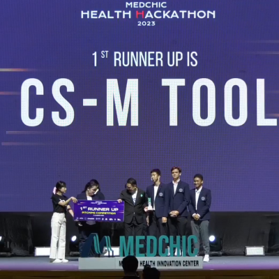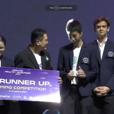 โดยภายในงานนักเรียน ได้ร่วมจัดบูธแสดงผลงานนวัตกรรมทางการแพทย์ และนำเสนอผลงานนวัตกรรมในช่วง Rising Star Innovators : Youth Startup Pitching Challenge ซึ่งประกอบไปด้วย Team Nanoplaster Plus Propolis , Team Vital Signs Hosp.App , Team CC-Lubag , Team Pressure Ulcer Healing Device , Team P-TAN และในโอกาสนี้ ตัวแทนครู นักเรียน จากทีม CS-M Tool ขึ้นรับรางวัลรองชนะเลิศอันดับ 1 ในการเข้าร่วมการแข่งขัน Pitching Challenge ของกิจกรรม MEDCHIC Health Hackathon 2023 ภายใต้หัวข้อ “Accelerate Health Impact” ณ หอประชุมมหาวิทยาลัยเชียงใหม่