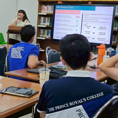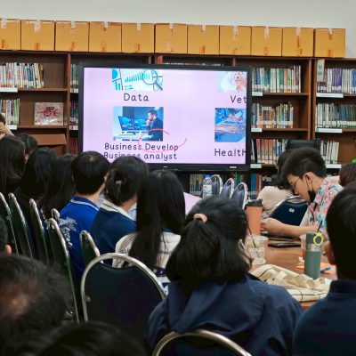 ระดับมัธยมศึกษาตอนปลาย เล็งเห็นความสำคัญในการดูแลช่วยเหลือนักเรียนชั้นมัธยมศึกษาตอนปลาย ให้นักเรียนสามารถเลือกเรียนได้เหมาะสมกับความสนใจ ความต้องการของตนเอง และสามารถเตรียมตัวสำหรับการศึกษาต่อระดับมหาวิทยาลัยในแต่ละรอบ โดยเชิญ คุณสุกฤตา วงศ์รัตนวรรณ Sale & Activities Section Manager จาก Tcaster มาอบรมให้ความรู้เรื่อง “ทิศทางการเข้ามหาวิทยาลัย” ณ ห้องสมุดมัธยมศึกษาตอนปลาย เมื่อวันที่ 13 พฤษภาคม 2568
