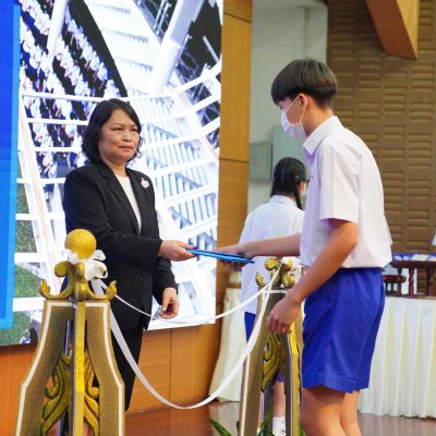 นางจินดา กำลังประสิทธิ์ รองศึกษาธิการจังหวัดเชียงใหม่ เป็นผู้ให้โอวาท และรับฟังปัจฉิมโอวาทจาก