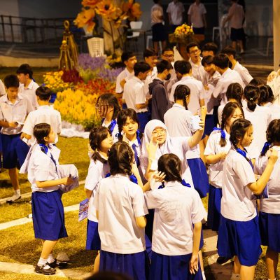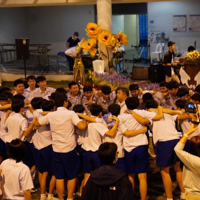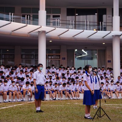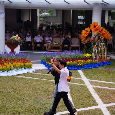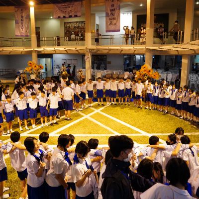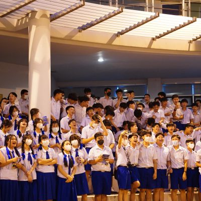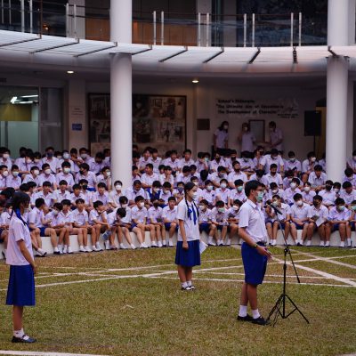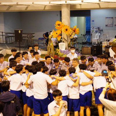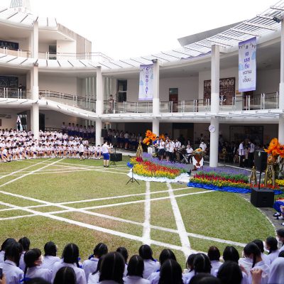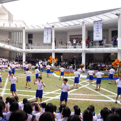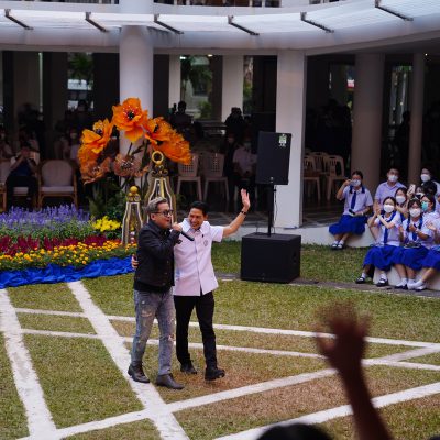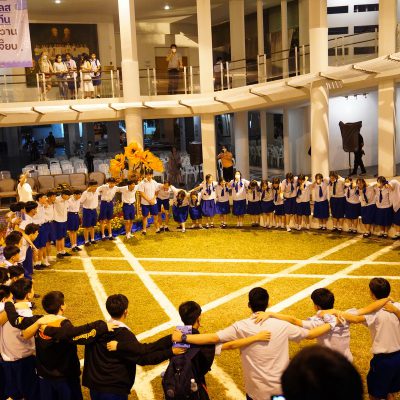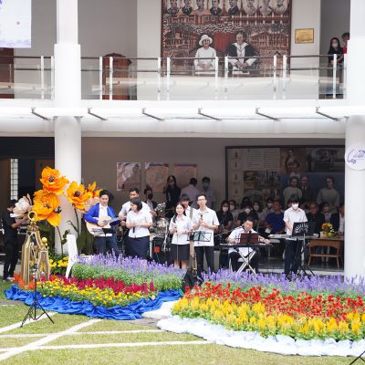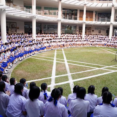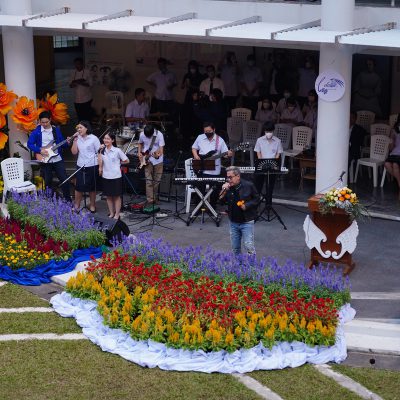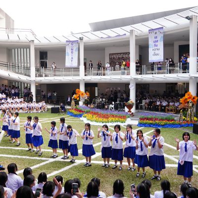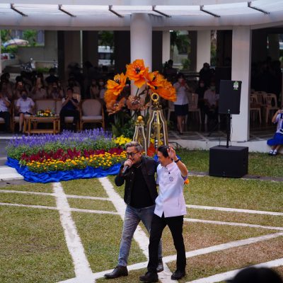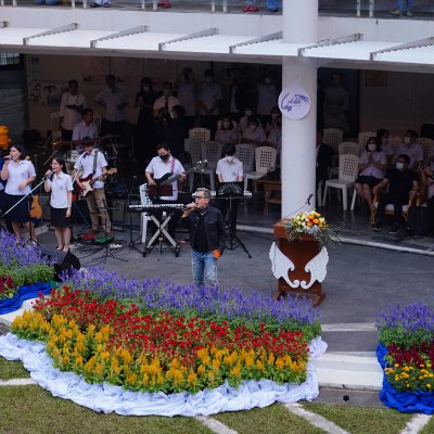 ร่วมร้องเพลง ให้กับนักเรียน ณ อาคาร 100 ปี สถาบันแฮรีส