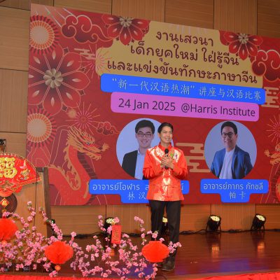 และแข่งขันทักษะภาษาจีน ณ อาคาร 100 ปี สถาบันแฮรีส โดยได้รับเกียรติจาก วิทยากรผู้เชี่ยวชาญด้านภาษาจีน 2 ท่าน ได้แก่
