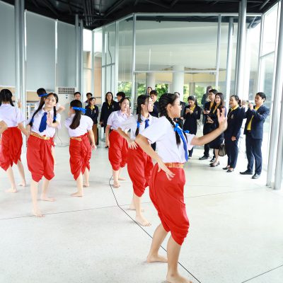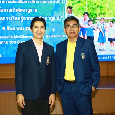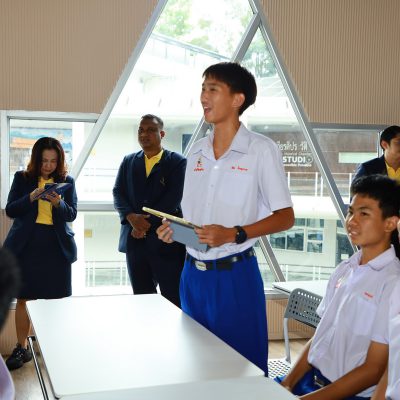 โดย ดร.เกรียง ฐิติจำเริญพร ผู้จัดการ–ผู้อำนวยการโรงเรียน กล่าวต้อนรับและบรรยายเกี่ยวกับการจัดการศึกษาของโรงเรียน ดร.ดุษิต พรหมชนะ รองผู้อำนวยการฝ่ายวิชาการ บรรยายในหัวข้อ