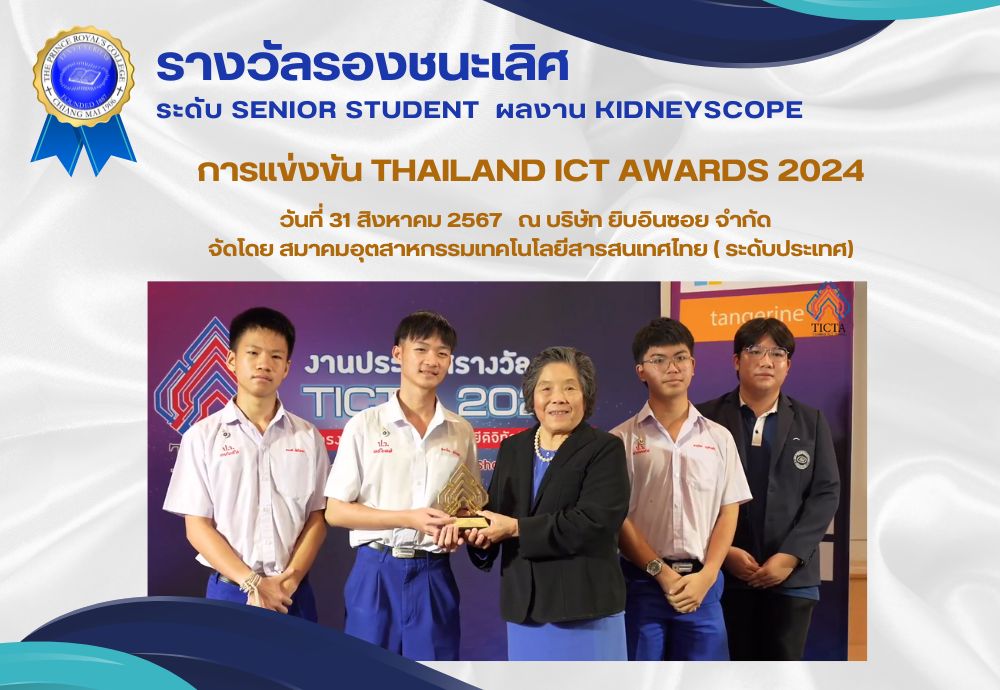 ขอชื่นชมและแสดงความยินดีกับ นายอนาวิน สุปินนะ ม.5/7 , นายธนบดี สีห์โสภณ ม.5/7 และนายพายุภัทร บุญท้าวแก้ว ม.5/7 ที่ได้รับรางวัลรองชนะเลิศ ระดับ Senior Student ผลงาน Kidneyscope จากการแข่งขัน Thailand ICT Awards 2024 เมื่อวันที่ 31 สิงหาคม 2567 ณ ห้องประชุม บริษัท ยิบอินซอย จำกัด จัดโดย สมาคมอุตสาหกรรมเทคโนโลยีสารสนเทศไทย (ระดับประเทศ)