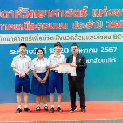 ขอชื่นชมและแสดงความยินดีกับ นางสาวพิมพ์ลดา ปฏิพัทธ์ปถวี ม.6/7, นายธนบดี สีห์โสภณ ม.5/7 และ นายอนาวิน สุปินนะ ม.5/7 ที่ได้รับรางวัลเชิดชูเกียรติ ระดับมัธยมศึกษาตอนปลาย สาขาวิทยาศาสตร์ประยุกต์ จากการแข่งขันโครงงานวิทยาศาสตร์ประจำปี 2567 รอบภาคเหนือตอนบน เมื่อวันที่ 17 – 19 สิงหาคม 2567 ณ มหาวิทยาลัยแม่โจ้ เชียงใหม่ จัดโดย มหาวิทยาลัยแม่โจ้ เชียงใหม่ ร่วมกับ องค์การพิพิธภัณฑ์วิทยาศาสตร์แห่งชาติ (อพวช.), สมาคมวิทยาศาสตร์แห่งประเทศไทยฯ (ระดับภาค)
