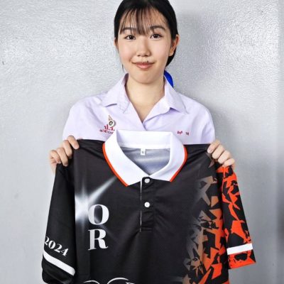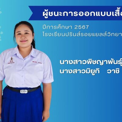 ออกแบบเสื้อ : นางสาวพิชญาพันธุ์ สาระจันทร์ ม.5/6 และนางสาวมิยูกิ วาชิ