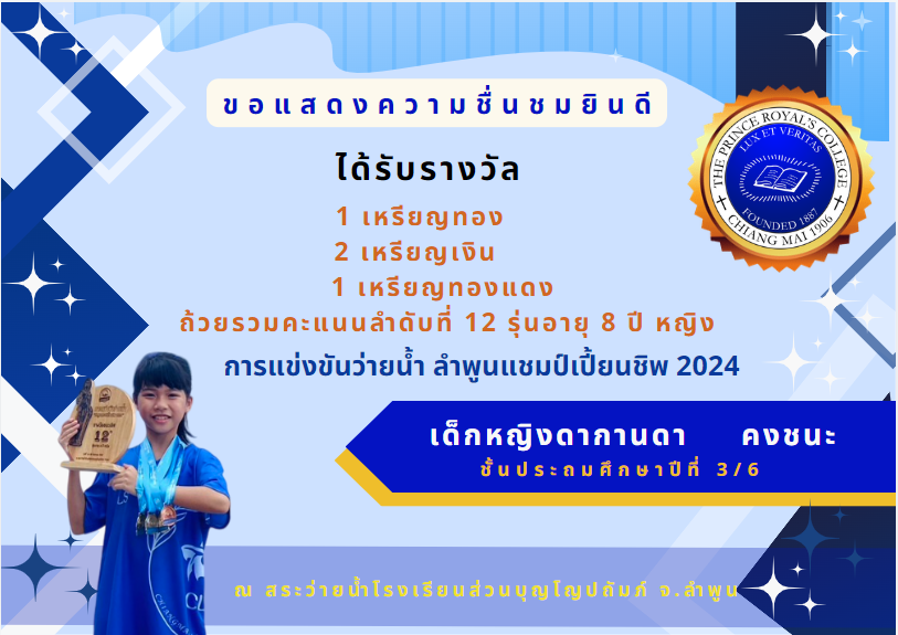 ขอแสดงความชื่นชมและร่วมยินดีกับ เด็กหญิงดากานดา คงชนะ