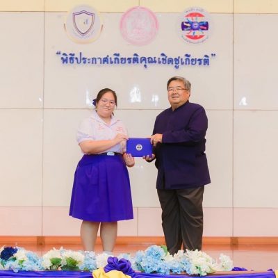 ขอชื่นชมและแสดงความยินดีกับ นางสาวกัญญ์ณณัฏฐ์ จอมใจป้อ ม.4/1  ที่ได้รับการคัดเลือกให้เป็นบุคคลต้นแบบ ที่ปฏิบัติตามคุณลักษณะค่านิยมไทย 5 และ 12 ประการเป็นผู้มีความรู้ความสามารถมีความจงรักภักดีต่อชาติ ศาสนา พระมหากษัตริย์ มีคุณธรรมจริยธรรม มีจิตอาสา และภาวะผู้นำสมควรได้รับเชิดชูเกียรติเป็นต้นแบบ  “คนดีศรีแผ่นดินสยาม“และ”คนดีศรีล้านนา“ ครั้งที่ 3 ประจำปี พ.ศ.2567   เมื่อวันที่ 29 กันยายน 2567  ณ หอประชุมแกรนด์วิชั่น มหาวิทยาลัยฟาร์อีสเทอร์น  จัดโดย สภาองค์กรเยาวชนสร้างชาติพัฒนาสังคม (ระดับจังหวัด)