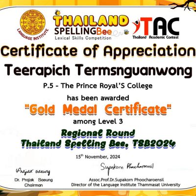 ได้รับรางวัลเกียรติบัตรเหรียญทอง Level 3 (ระดับประเทศ)