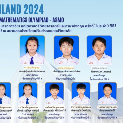 ขอชื่นชมและแสดงความยินดีกับนักเรียนระดับชั้นประถมศึกษาปีที่ 4 – 6 ที่ได้รับรางวัลจากการแข่งขันวัดระดับความสามารถทางวิชา คณิตศาสตร์ วิทยาศาสตร์ และภาษาอังกฤษ ASMO (Asian Science and Mathematics Olympiad) THAI 2024 ครั้งที่ 11 ประจำปี 2567 สอบเมื่อวันที่ 8 กันยายน 2567 ณ สนามสอบโรงเรียนปรินส์รอยแยลส์วิทยาลัย