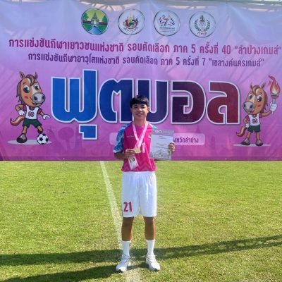 ขอชื่นชมและแสดงความยินดีกับ นายสุรนนท์ เพชรอำไพ ม.6/10 นักกีฬาฟุตบอล ที่ได้รับรางวัลชนะเลิศเหรียญทอง จากการเเข่งขันกีฬาเยาวชนเเห่งชาติ ครั้งที่ 40 รอบคัดเลือกภาค 5 “ลำปางเกมส์ 2024” ระหว่างวันที่ 1 – 10 พฤศจิกายน 2567 ณ สนามกีฬากลางจังหวัดลำปาง จัดการเเข่งขันโดย การกีฬาเเห่งประเทศไทย ภาค 5 (ระดับภาค)
