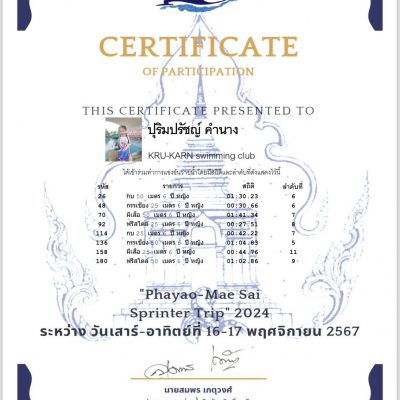 รายการแข่งขัน การแข่งขันว่ายน้ำพะเยา – แม่สาย จ.ลำปาง ปี 2567 จัดโดย ALPHA SWIMMING CLUB จังหวัดลำปาง วันที่ 16-17 พฤศจิกายน 2567