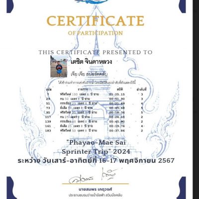 เข้าร่วมการแข่งขันว่ายน้ำได้รับรางวัลถ้วยรองชนะเลิศอันดับ 2 รุ่นอายุ 8 ปี ชาย พร้อมด้วย 3 เหรียญเงิน 5 เหรียญทองแดง รายการแข่งขันว่ายน้ำรายการ Phayao-Mae Sai Sprinter Trip 2024 ณ สระว่ายน้ำมหาวิทยาลัยการกีฬาแห่งชาติ วิทยาเขตลำปาง จังหวัดลำปาง ระหว่างวันที่ 16-17 พฤศจิกายน 2567