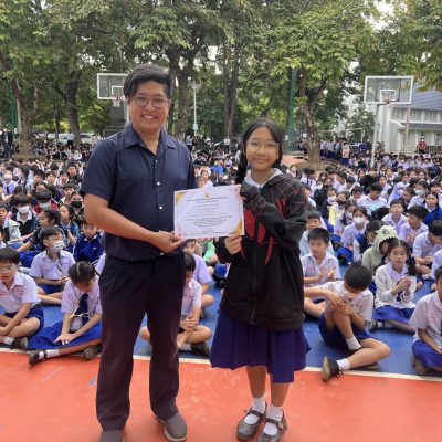 นักเรียนชั้นประถมศึกษาปีที่ 6 ที่ได้รับรางวัลเหรียญทองแดง จากการแข่งขันเกมต่อคำศัพท์ภาษาไทย (คำคม) ระดับประถมศึกษา รายการแข่งขัน “BSK 102” A-MATH CROSSWORD KUMKOM CHAMPIONSHIP 2024 ชิงถ้วยเกียรติยศนายกรัฐมนตรี