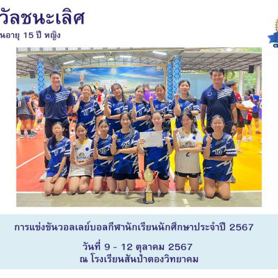 ขอชื่นชมและร่วมแสดงความยินดีกับ นักกีฬาวอลเลย์บอลทีม PRC ได้รับรางวัลชนะเลิศ การแข่งขันวอลเลย์บอล กีฬานักเรียนนักศึกษา รุ่นอายุ 15 ปีหญิง ประจำปี 2567 ระหว่างวันที่ 9 – 12 ตุลาคม 2567 ณ โรงเรียนสันป่าตองวิทยาคม