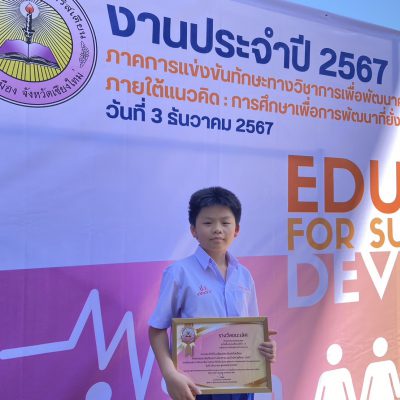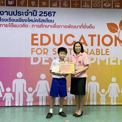 ขอแสดงความชื่นชมและร่วมแสดงความยินดีกับ เด็กชายปริญญ์ วุฒิสุภา นักเรียนชั้นประถมศึกษาปีที่ 3/5 ที่ได้รับรางวัล ชนะเลิศ การแข่งขัน Spelling bee ระดับชั้นประถมศึกษาปีที่ 1-3 กลุ่มสาระการเรียนรู้ภาษาต่างประเทศ ในงานประจำปี โรงเรียนเชียงใหม่คริสเตียน ภาคการแข่งขันทักษะทางวิชาการ ปีการศึกษา 2567 เมื่อวันที่ 3 ธันวาคม 2567 ณ โรงเรียนเชียงใหม่คริสเตียน
