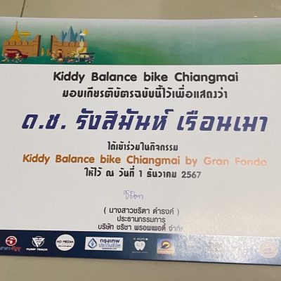 ได้รับรางวัล ชนะเลิศลำดับที่ 5 รุ่นปั่น open จากการแข่งขัน จักรยานหนูน้อยขาไถ Kiddy Balance Bike Chiang mai By Gran Fondo