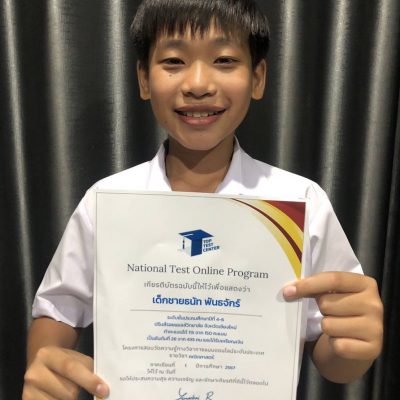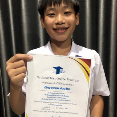ที่ได้รับรางวัลเหรียญทองวิชาภาษาอังกฤษ และเหรียญเงินวิชาคณิตศาสตร์ โครงการสอบวัดความรู้ทางวิชาการแบบออนไลน์ National Test Online Program ระดับประเทศ