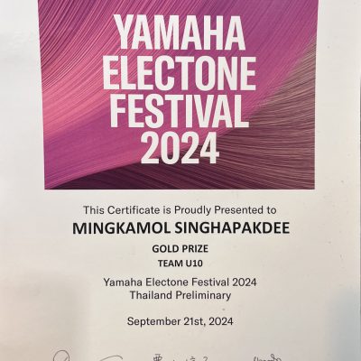 ขอชื่นชมและร่วมแสดงความยินดีกับ เด็กหญิงมิ่งกมล สิงห์ภักดี ชั้นประถมศึกษาปีที่ 2/2 ได้รับรางวัล ชนะเลิศ Gold Prize จากการแข่งขันรายการ Yamaha Electone Festival 2024 ประเภท Team 10 จัดโดย สถาบันดนตรียามาฮ่า เมื่อวันที่ 21 กันยายน 2567