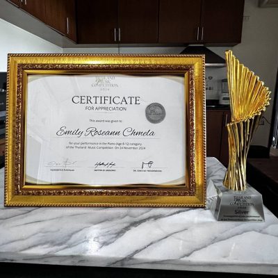 ขอชื่นชมและร่วมแสดงความยินดีกับ เด็กหญิงเอมิลี่ โรสแอนด์ คเมลา ชั้นประถมศึกษาปีที่ 2/2 ได้รับถ้วยรางวัลเหรียญเงิน จากการประกวดร้องเพลงและดนตรีแห่งประเทศไทย Thailand music competition จัดโดย Thailand Music Competition เมื่อวันที่ 24 พฤศจิกายน 2567