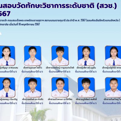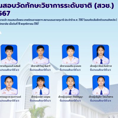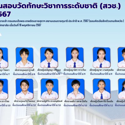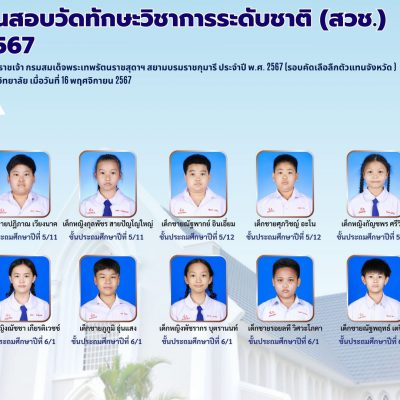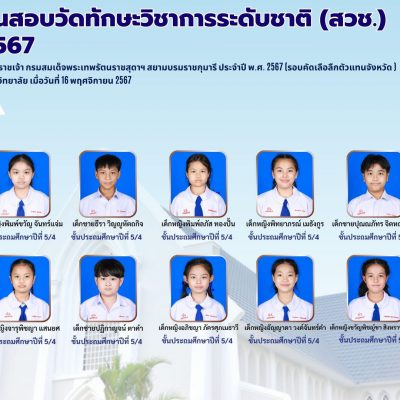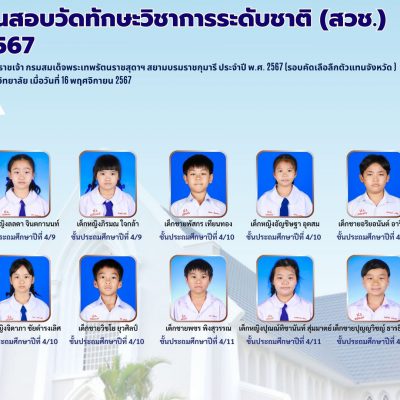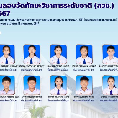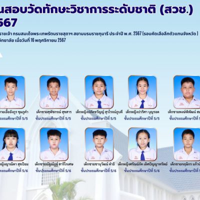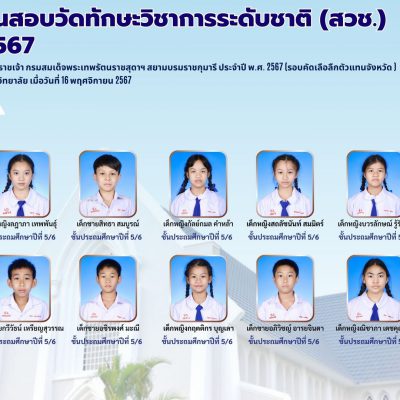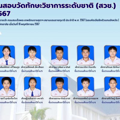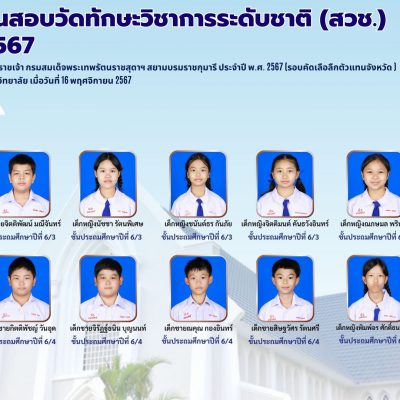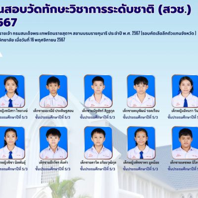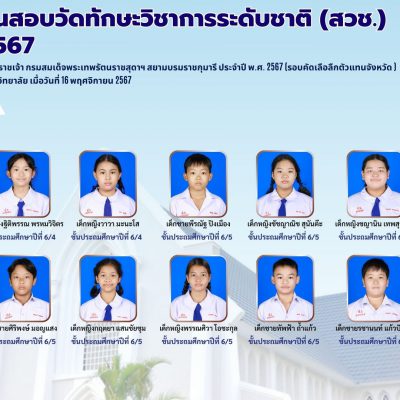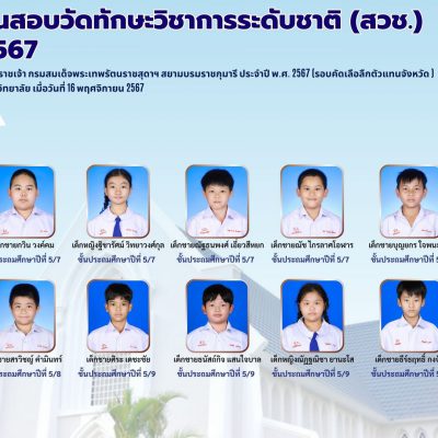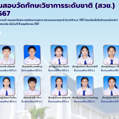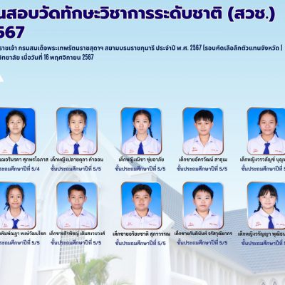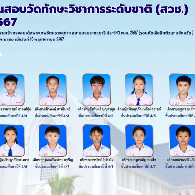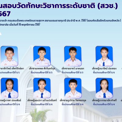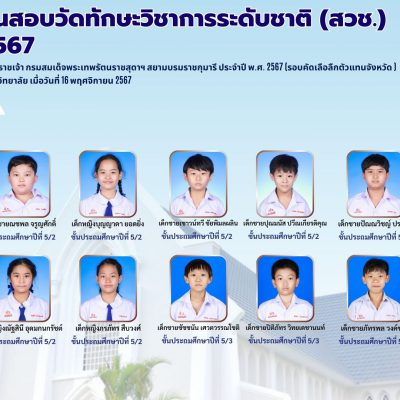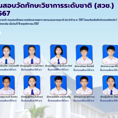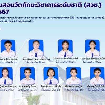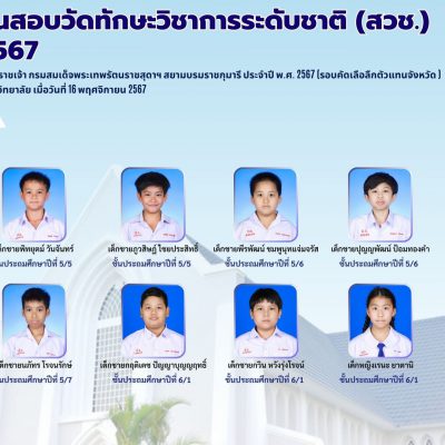 ขอแสดงความยินดีกับนักเรียนชั้นประถมศึกษาปีที่ 4-6 ที่ได้รับรางวัลจากการสอบวัดทักษะวิชาการระดับชาติ (สวช.) ประจำปี พ.ศ. 2567 (รอบคัดเลือกตัวแทนจังหวัด) วิชาวิทยาศาสตร์ สอบวันที่ 16 พฤศจิกายน 2567 ณ สนามสอบโรงเรียนปรินส์รอยแยลส์วิทยาลัย