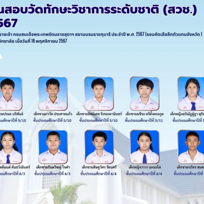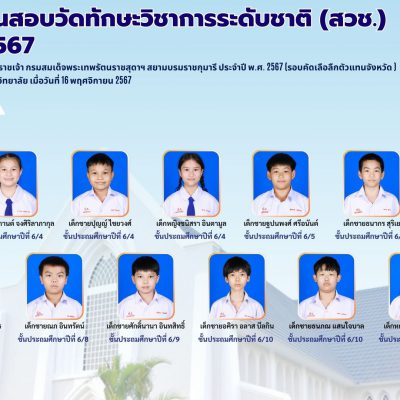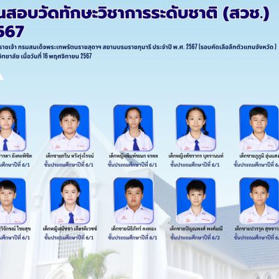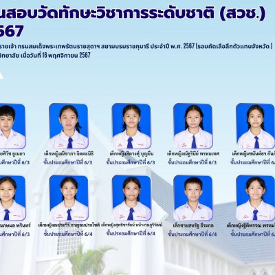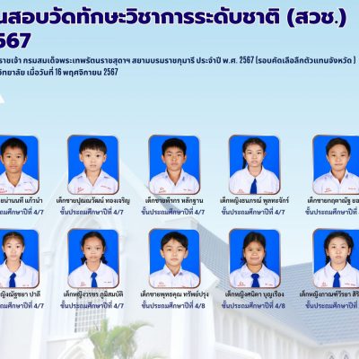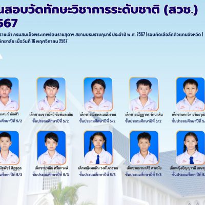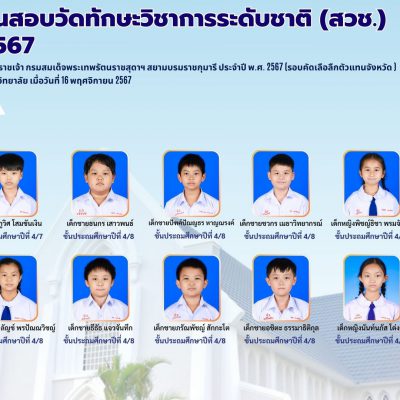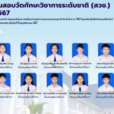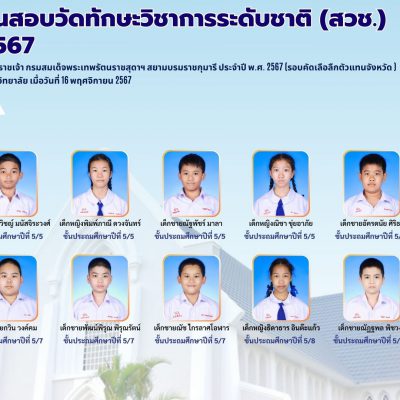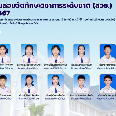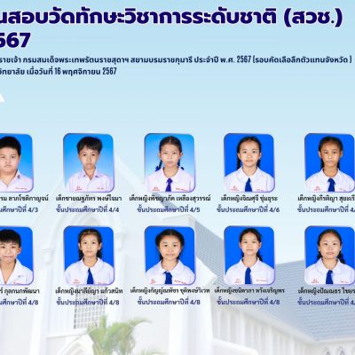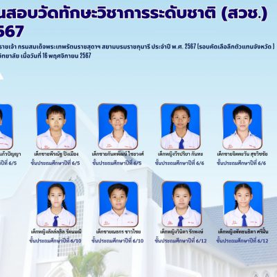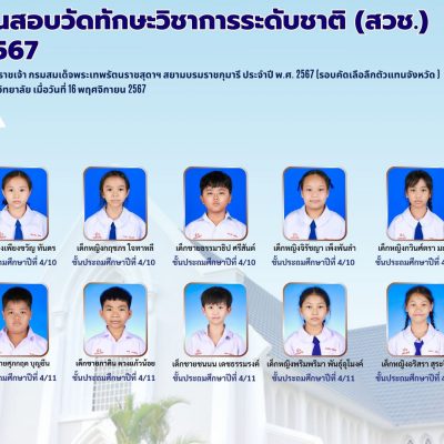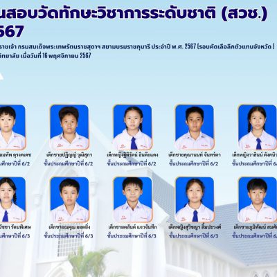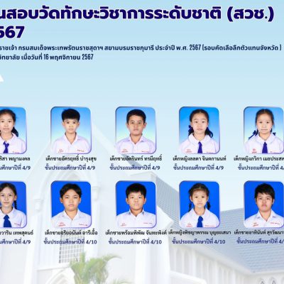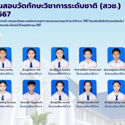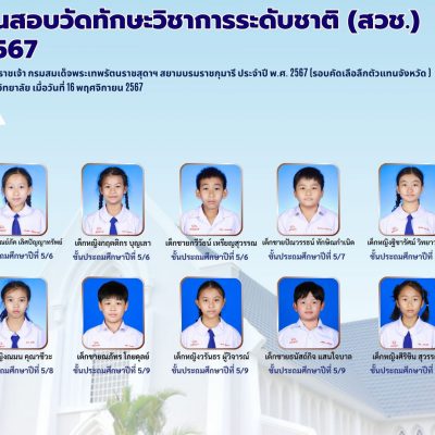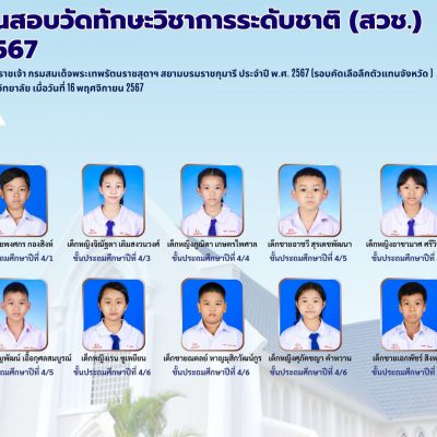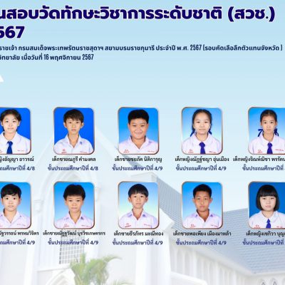ขอแสดงความยินดีกับนักเรียนชั้นประถมศึกษาปีที่ 4-6 ที่ได้รับรางวัลจากการสอบวัดทักษะวิชาการระดับชาติ (สวช.) ประจำปี พ.ศ. 2567 (รอบคัดเลือกตัวแทนจังหวัด) วิชาภาษาอังกฤษ สอบวันที่ 16 พฤศจิกายน 2567 ณ สนามสอบโรงเรียนปรินส์รอยแยลส์วิทยาลัย