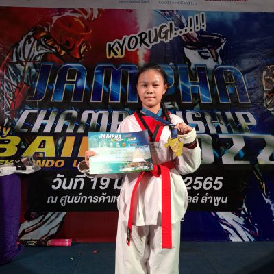 ขอแสดงความยินดีกับ เด็กหญิงภัทศิตา ศิริปัญญา นักเรียนชั้นประถมศึกษาปีที่ 4/3 ที่ได้รับรางวัลรองชนะเลิศอันดับ 2 การแข่งขันเทควันโด JAMPHA CHAPIONSHIP 2022 รุ่นอายุ 9-10 ปีหญิง น้ำหนัก 32-36 กิโลกรัม ประเภทต่อสู้ระดับโอเพ่น จัดโดย BAILE TAEKWONDO LAMPHUN ณ ห้างสรรพสินค้าแจ่มฟ้าช็อปปิ้งมอลล์ วันที่ 19 มิถุนายน 2565