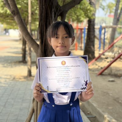 ดอัยยขอชื่นชมและร่วมแสดงความยินดีกับ เด็กหญิงอัยย์ญาดา ใจบุญนอก ชั้นประถมศึกษาปีที่ 2/5