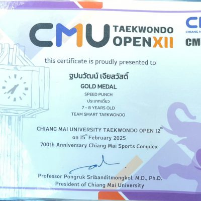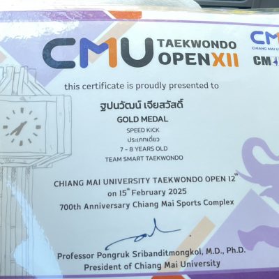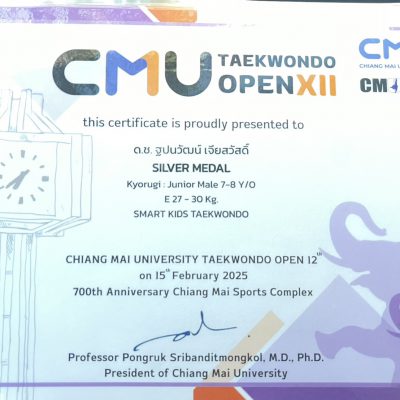 ขอชื่นชมและแสดงความยินดีกับเด็กชายฐปนวัฒน์ เจียสวัสดิ์ อนุบาล 3/11 ได้รับรางวัล 2 เหรียญทอง รายการ SPEED PUNCH และรายการ SPEED KICK ประเภทเดี่ยว 7 – 8 YEARS OLD TEAM SMART TAEKWONDO รางวัล 1 เหรียญเงิน แข่งต่อสู้ KYORUGI : JUNIOR MALE 7 – 8 YEARS OLD E 27 – 30 KG. SMART KIDS TAEKWONDO จากการแข่งขันเทควันโด CMU TAEKWONDO OPEN ครั้งที่ 12 ประจำปี 2568 จัดโดย ชมรมเทควันโดมหาวิทยาลัยเชียงใหม่ ร่วมกับสถาบันสมาร์ทเทควันโดและศูนย์กีฬาเทควันโดสนามกีฬา 700 ปี จังหวัดเชียงใหม่ เมื่อวันที่ 15 กุมภาพันธ์ 2568 ณ โรงยิมพละ 2 สนามกีฬาสมโภช 700 ปี จังหวัดเชียงใหม่
