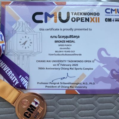 ขอชื่นชมและแสดงความยินดีกับเด็กชายฌาน โอวกุสุมสิริสกุล อนุบาล 3/9 ได้รับรางวัล 1 เหรียญทองแดง รายการ SPEED PUNCH ประเภทเดี่ยว BELOW 6 YEARS OLD TEAM โรงเรียนปรินส์รอยแยลส์วิทยาลัย จากการแข่งขันเทควันโด CMU TAEKWONDO OPEN ครั้งที่ 12 ประจำปี 2568 จัดโดย ชมรมเทควันโดมหาวิทยาลัยเชียงใหม่ ร่วมกับสถาบันสมาร์ทเทควันโดและศูนย์กีฬาเทควันโดสนามกีฬา 700 ปี จังหวัดเชียงใหม่ เมื่อวันที่ 15 กุมภาพันธ์ 2568 ณ โรงยิมพละ 2 สนามกีฬาสมโภช 700 ปี จังหวัดเชียงใหม่