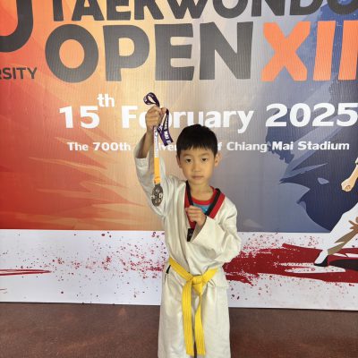 ขอชื่นชมและแสดงความยินดีกับเด็กชายพงษ์พิชญ์ กิตติศัพท์พานิช อนุบาล 3/6 ได้รับรางวัล 1 เหรียญเงิน การแข่งต่อสู้ KYORUGI : JUNIOR MALE 5 – 6 KG. จากการแข่งขันเทควันโด CMU TAEKWONDO OPEN ครั้งที่ 12 ประจำปี 2568 จัดโดย ชมรมเทควันโดมหาวิทยาลัยเชียงใหม่ ร่วมกับสถาบันสมาร์ทเทควันโดและศูนย์กีฬาเทควันโดสนามกีฬา 700 ปี จังหวัดเชียงใหม่ เมื่อวันที่ 15 กุมภาพันธ์ 2568 ณ โรงยิมพละ 2 สนามกีฬาสมโภช 700 ปี จังหวัดเชียงใหม่