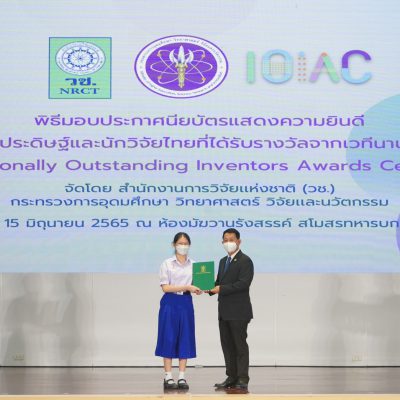 เวที “Seoul International Invention Fair 2021” ณ กรุงโซล ประเทศเกาหลีใต้ ระหว่างวันที่ 1 – 4 ธันวาคม 2564 โดยนักวิจัยเจ้าของผลงาน ได้แก่